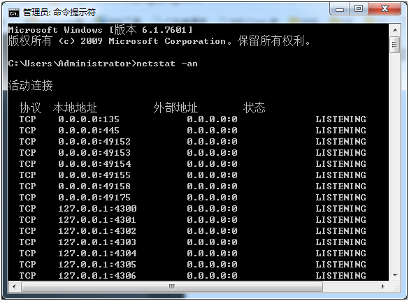 在圖2的顯示結果中,有4列,第1列為協議,第2列為本地地址及端口,第3列為目標地址及端口,第4列為當前狀態。例美國服務器利用 netstat -an命令,以數據形式顯示所有開放端口。命令執行情況如圖3所示: