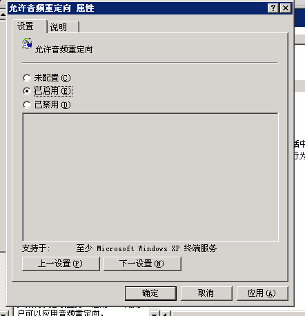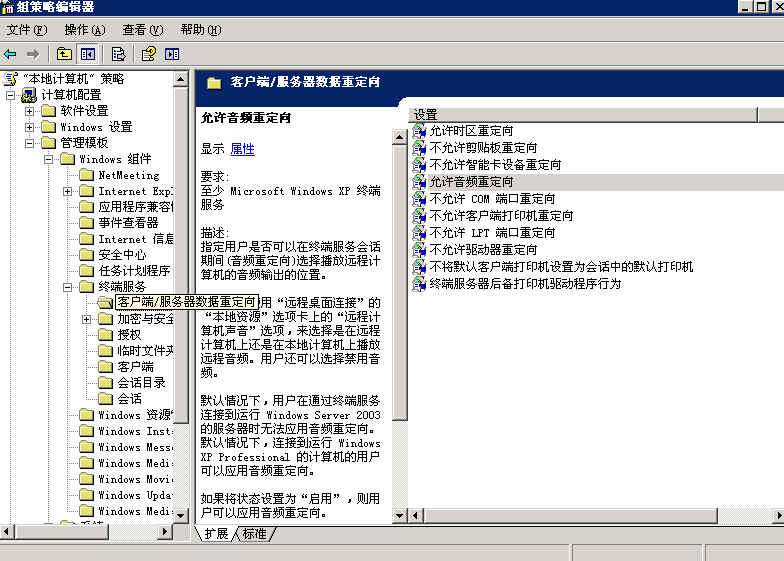 3.選擇右邊的:允許音頻重定向,雙擊打開